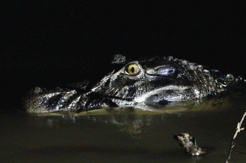 45-minute foray. Afterward, as we return to our canoe, we'll embark on one of the night's most thrilling pursuits: the search for the elusive black caimans and tree boas along the Cuyabeno River, guiding us back to our ecolodge.